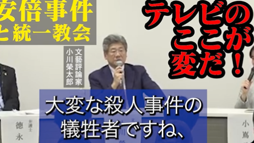 文藝評論家の小川榮太郎氏が、安倍元首相暗殺事件後のテレビのおかしさに言及した。わずか数日間で安倍さんと #旧統一教会 は加害者だという報道が全テレビ局横並びでなされて、短期間で世論が確定し、解散命令に至った。この流れは明らかにおかしく、裏があると指摘した↓