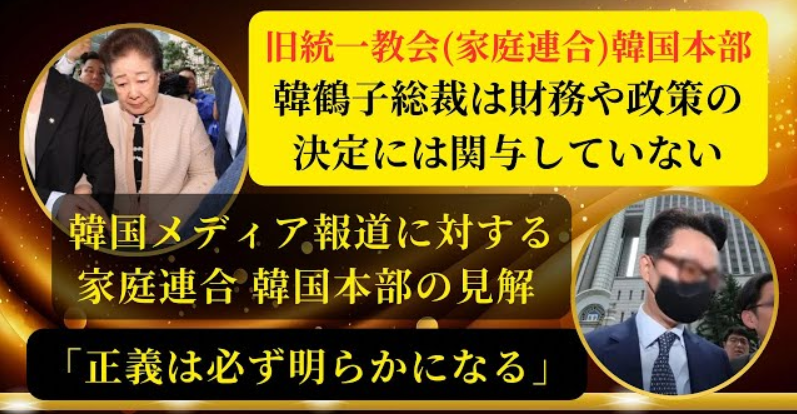 韓鶴子総裁は財務や政策の決定には関与していない。韓国メディア報道に対する家庭連合韓国本部の見解「正義は必ず明らかになる」