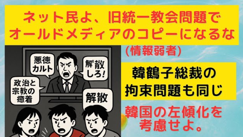 ネット民よ、旧統一教会問題でオールドメディアのコピー(情報弱者)になるな! 韓鶴子総裁の拘束問題も同じ 韓国の左傾を考慮せよ
