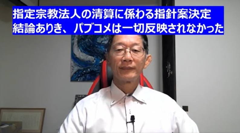 指定宗教法人の清算に係わる指針案決定 結論ありき、 パブコメは一切反映されなかった【小笠原家庭教会】