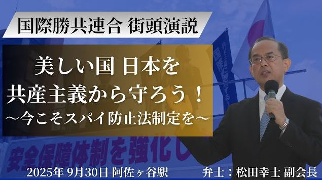国際勝共連合 街頭演説「美しい国 日本を共産主義から守ろう!~今こそスパイ防止法制定を~」~