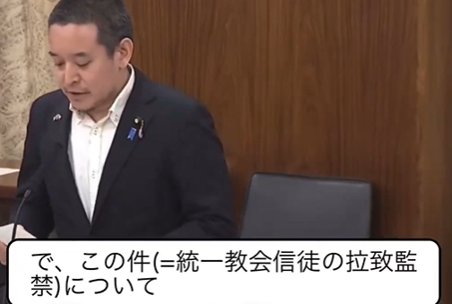 国会で浜田聡議員は #旧統一教会 信者を強制棄教させる為の #拉致監禁 に数多く関与し、成人男性への12年以上の拉致監禁を指南したとして最高裁で敗訴した宮村峻氏が国政政党と深く関与していることを問題視。その政党とは立憲民主党で、#有田芳生 氏の紹介で宮村氏を招いた↓