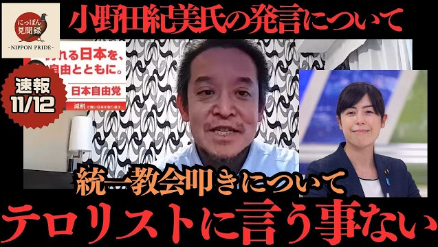 【小野田紀美ブチギレ】「テロリストに何も言う事はない!」小野田大臣の毅然対応と“統一教会”問題の本質を浜田聡が解説!