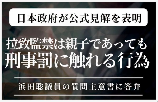 「親子であっても、拉致監禁は刑事罰に触れる行為」 (日本政府が正式答弁)