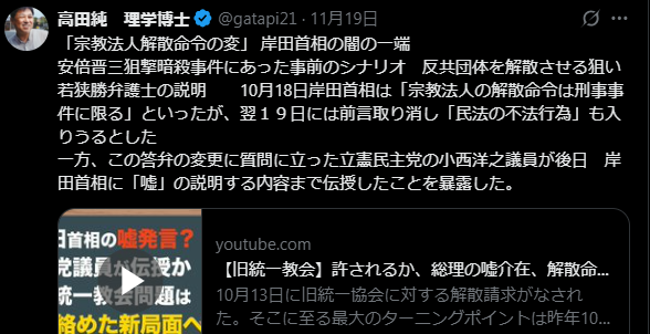 「宗教法人解散命令の変」 岸田首相の闇の一端 【高田純 理学博士】