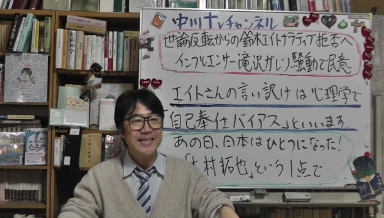 世論反転からの鈴木エイトナラティブを拒否へ インフルエンサー滝沢ガレソ氏アカウントで民意が示された エイト氏に対して民意が防御反応 日本は一つになった【木村拓哉】と言う」一点で【中川TVチャンネル】