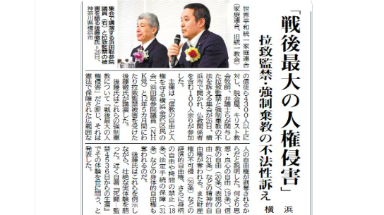 旧統一教会信者に対して行われた拉致監禁による強制棄教問題。その数、4300名以上、または10000名を越えるとも言われますが、オールドメディアは全く報道してくれません。