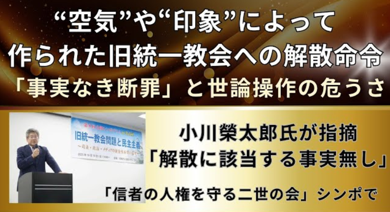 “空気”や“印象”によって作られた旧統一教会への解散命令「事実なき断罪」と世論操作の危うさ――小川榮太郎氏が指摘、「解散に該当する事実なし」