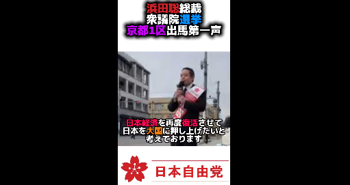日本自由党 浜田聡総裁 #衆議院選挙 #京都1区 第一声 「過剰な福祉が国家を滅ぼす!」