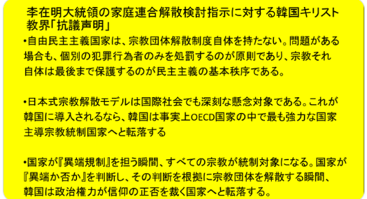 李在明大統領が家庭連合解散の検討を指示したことに対し、韓国キリスト教界が抗議声明を出しました