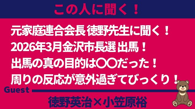 【この人に聞く!】元家庭連合会長 徳野先生に聞く!2026年3月金沢市長選 出馬!出馬の真の目的は〇〇だった!周りの反応が意外過ぎてびっくり! ゲスト:徳野英治×小笠原裕
