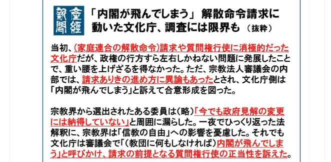 文科省は『内閣が飛んでしまう!』と関係者に懇願し、家庭連合解散ありきで議論を誘導し解散命令を導き出した
