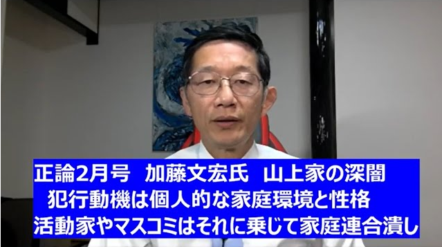 正論2月号 加藤文宏氏 山上家の深闇 犯行動機は個人的な家庭環境と性格 活動家やマスコミはそれに乗じて家庭連合潰し【小笠原家庭教会】