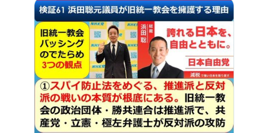 浜田聡議員の指摘は正に正論。 旧統一教会バッシングの裏にあるのは、特定野党や弁護士連中による政治的意図だ。