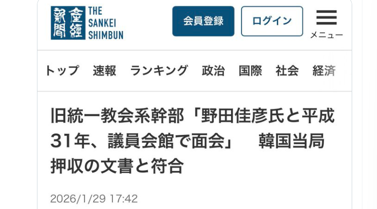 【野田共同代表、終了のお知らせ】 勝共連合の幹部が、2019年1月に中革連の「野田佳彦共同代表と衆院議員会館で面会した」と証言。 「TM特別報告」の記載内容と一致!
