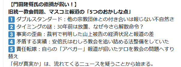 【門田隆将氏の指摘が鋭い!】 旧統一教会問題、マスコミ報道の「5つのおかしな点」