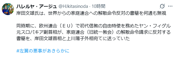 岸田文雄氏は、世界からの家庭連合への解散命令反対の書簡を何通も無視
