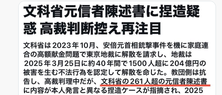 文部科学省職員が、家庭連合に対する解散請求裁判で、陳述書の捏造が発覚