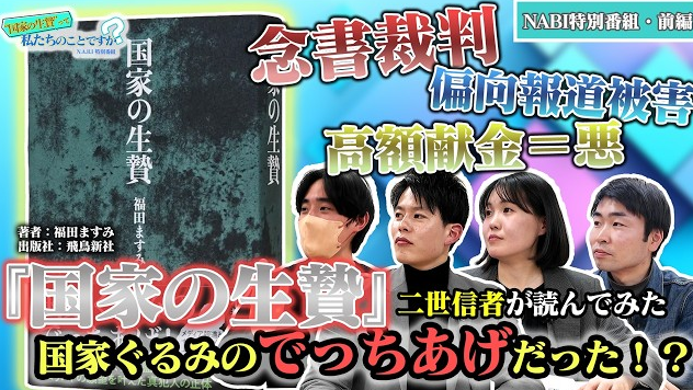 - N.A.B.Iの二世信者たちが、話題の書籍『国家の生贄』を読みながら「現役信者・二世の声が社会やメディアに届かない悔しさ」を語り合う回。