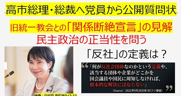 高市総理・総裁へ党員から公開質問状 旧統一教会との「関係断絶宣言」の見解 民主政治の正当性を問う 「反社」の定義は?【がっしーチャンネル】
