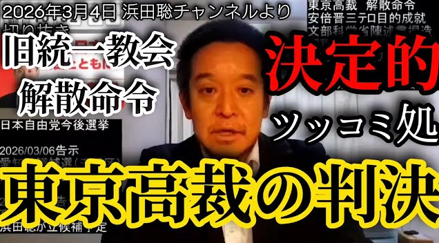 - 動画は、東京高裁の家庭連合解散命令について、表向きの「民事上の不法行為」だけでなく、和解・示談や証拠の乏しい「顕在化しない被害」まで根拠にされた点が大きな問題だと指摘している。