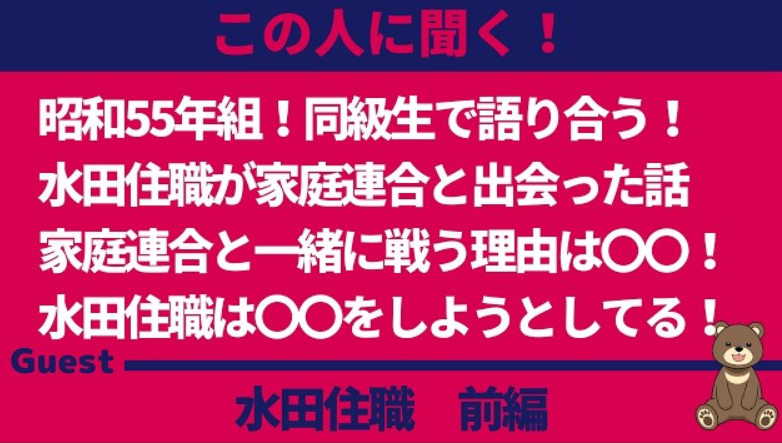 【この人に聞く】前編 昭和55年組!同級生で語り合う!水田住職が家庭連合と出会った話家庭連合と一緒に戦う理由は〇〇!水田住職は〇〇をしようとしている。【ゲスト:水田真道住職】