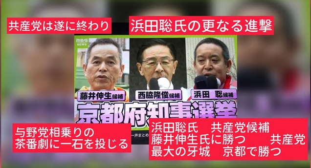 ② 共産系の藤井伸生候補は左翼の牙城・京都でまさかの3位敗北となり、共産党の退潮が明確に示された。
