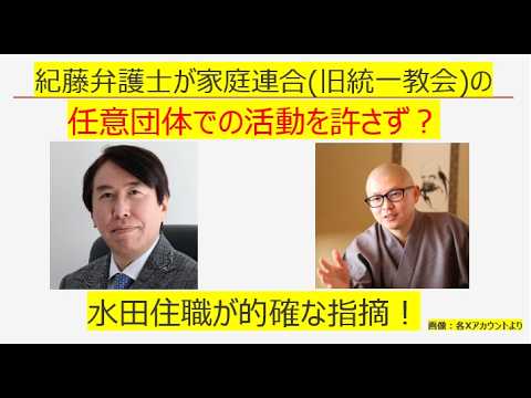 【動画要約】紀藤弁護士が家庭連合(旧統一教会)の任意団体での活動を批判? 水田住職が的確な指摘!