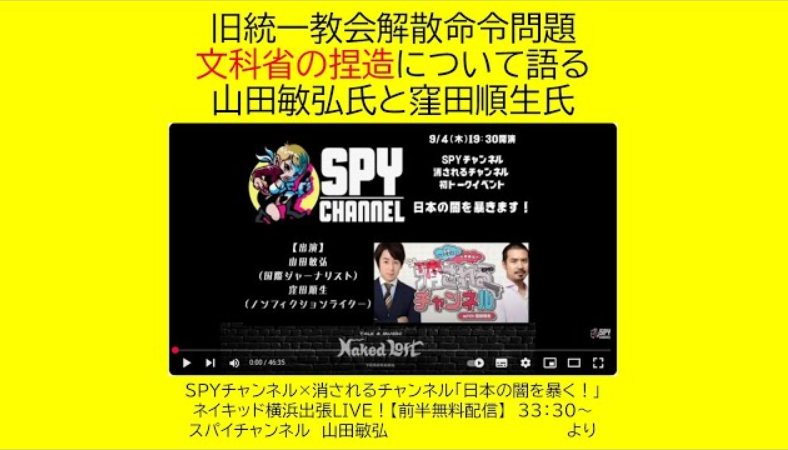 旧統一教会解散命令問題 文科省の捏造について語る 山田敏弘氏と窪田順生氏/SPYチャンネル×消されるチャンネル「日本の闇を暴くネイキッド横浜出張ライブより【east-6500】