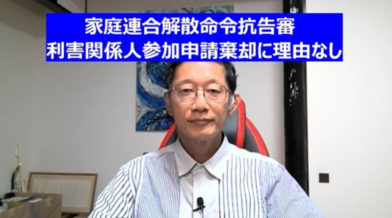 家庭連合解散命令抗告審 利害関係人参加申請棄却に理由なし【小笠原家庭教会】