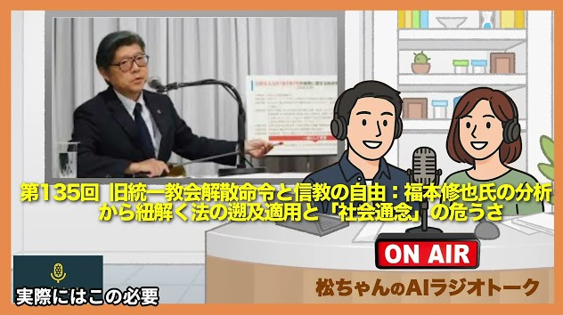 第135回 旧統一教会解散命令と信教の自由:福本修也氏の分析 から紐解く法の遡及適用と「社会通念」の危うさ【tmat7】