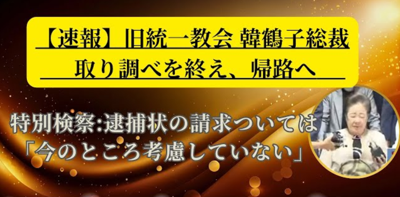 【速報】旧統一教会 韓鶴子総裁 取り調べを終える。特別検察:逮捕状の請求については「今のところ考慮していない」【がっしーチャンネル】