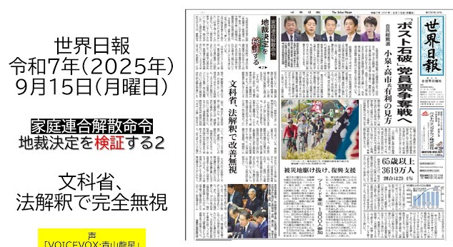 家庭連合解散命令 地裁決定を検証する(2)文科省、法解釈で改善無視/世界日報20250915第1面【east-6500】